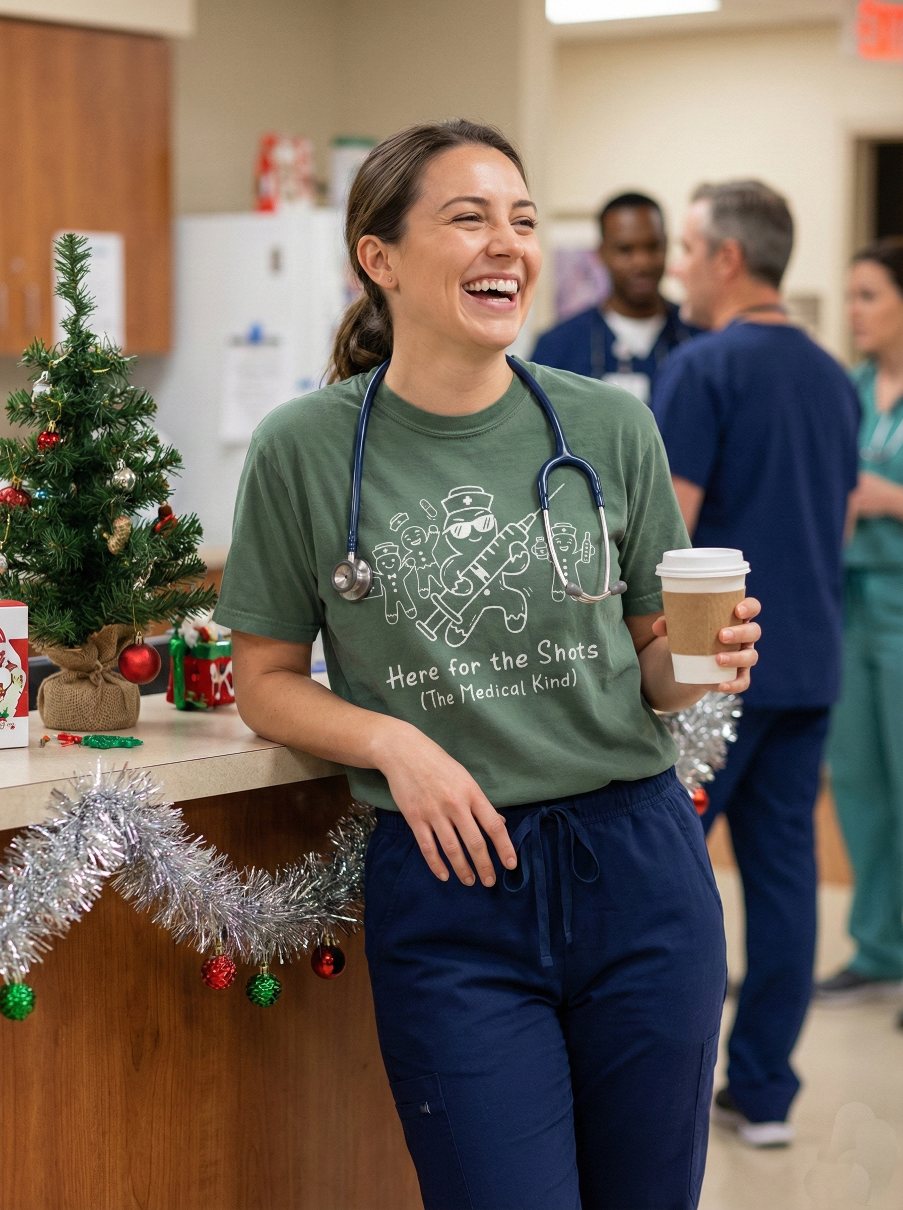 "Here For The Shots (The Medical Kind)" Vintage Wash Tee – The Ultimate Nurse Christmas Uniform